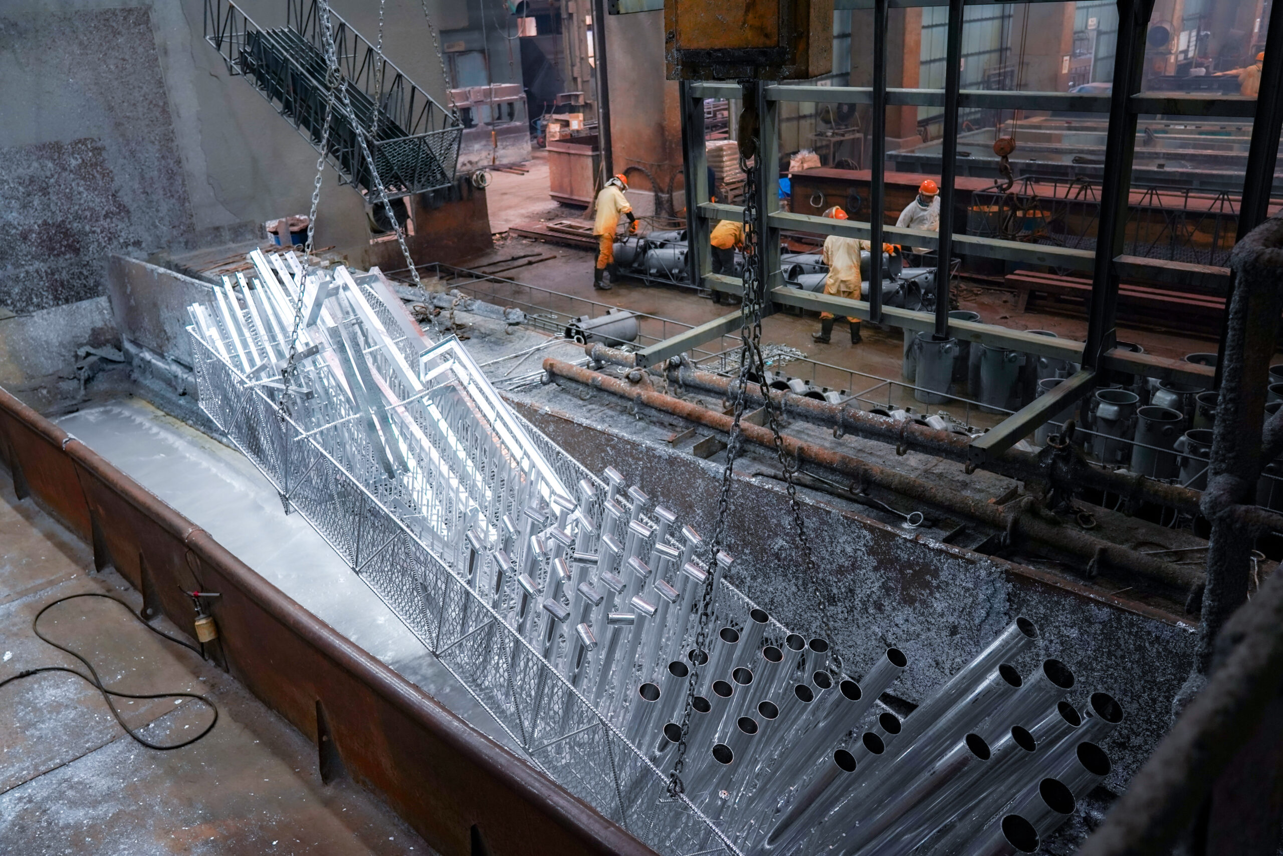 大型のめっき槽を装備した生産性の高いめっきラインで構造物から鋼管まで各種形状のめっき処理が可能です。